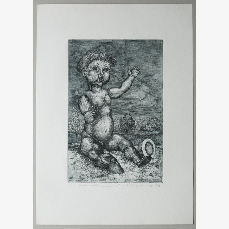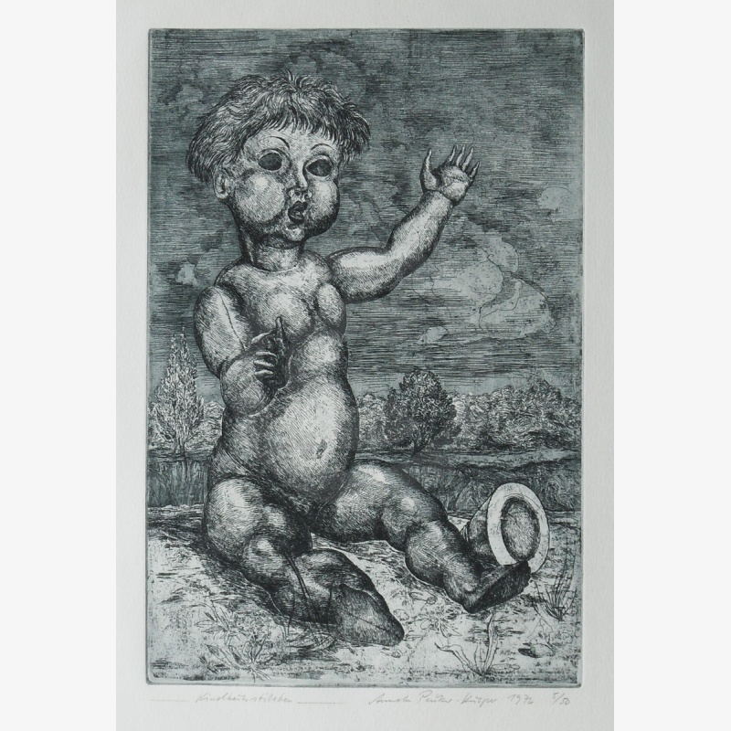 . Kindheitsstillleben, aus: "Vierte Leipziger Grafikmappe - Stillleben", 1978, Verschiedene Künstler, Repräsentationsgabe vom VEB E. A. Seemann Buch- und Kunstverlag Leipzig mit Originalgrafiken, 1976