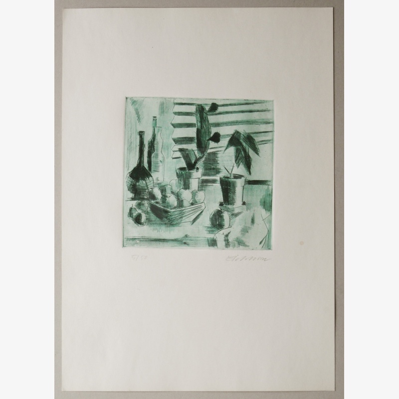 . Stillleben mit Kakteen, aus: "Vierte Leipziger Grafikmappe - Stillleben", 1978, Verschiedene Künstler, Repräsentationsgabe vom VEB E. A. Seemann Buch- und Kunstverlag Leipzig mit Originalgrafiken, 1974/ 1975